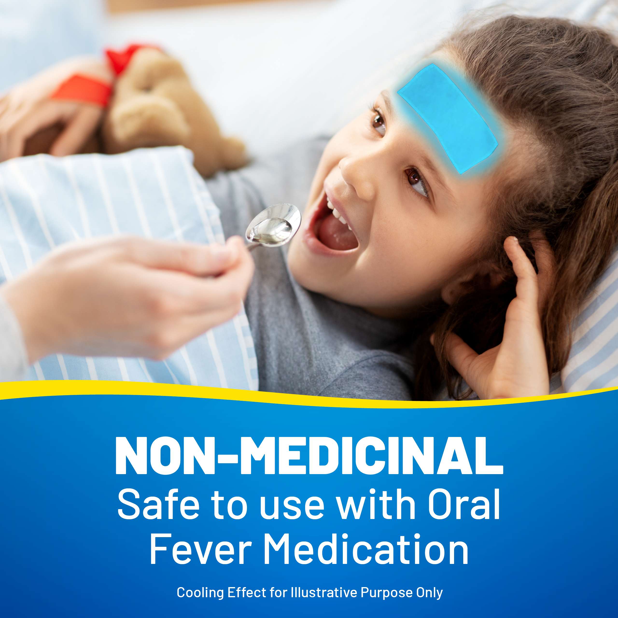 - Targeted cooling relief to alleviate a child's forehead when they have a fever