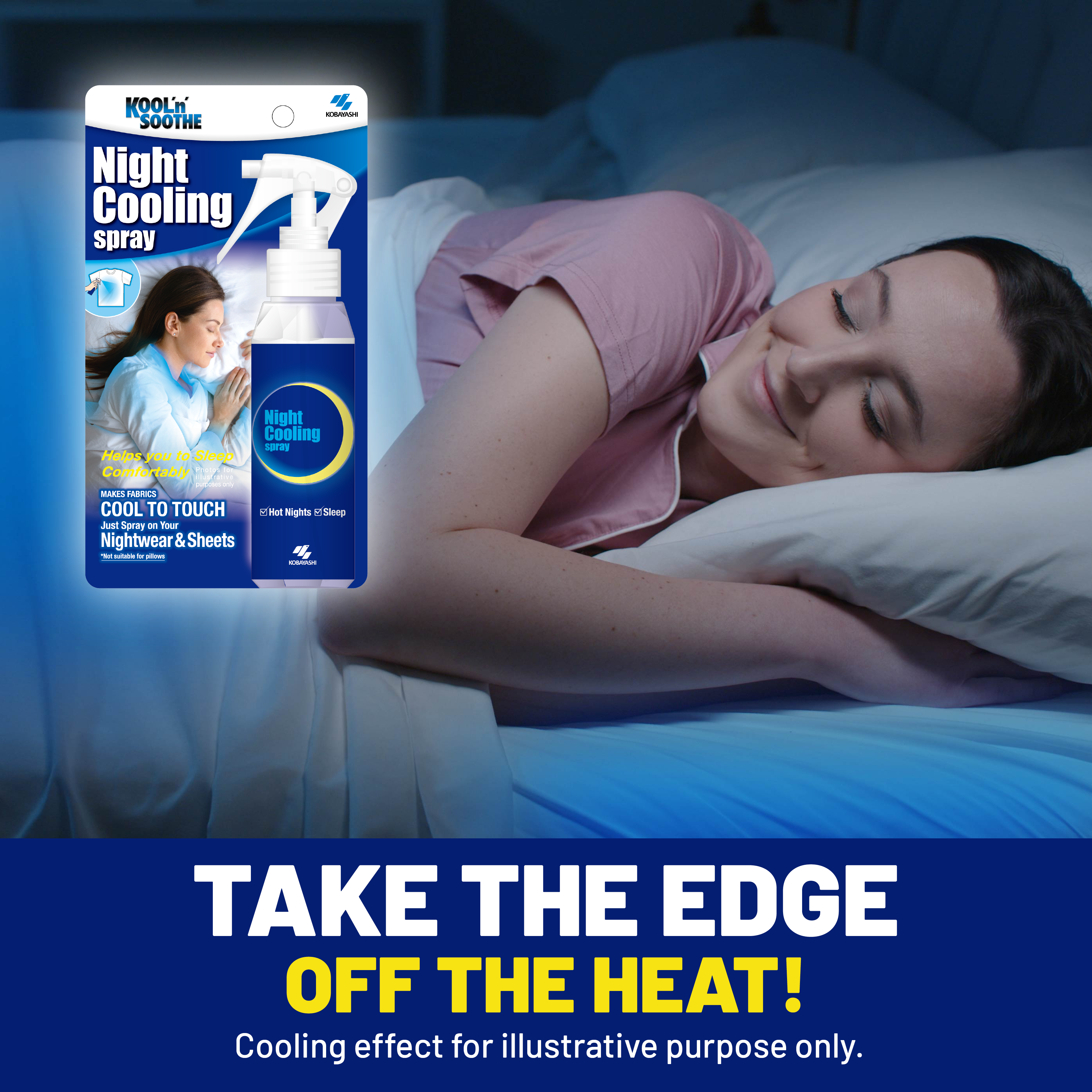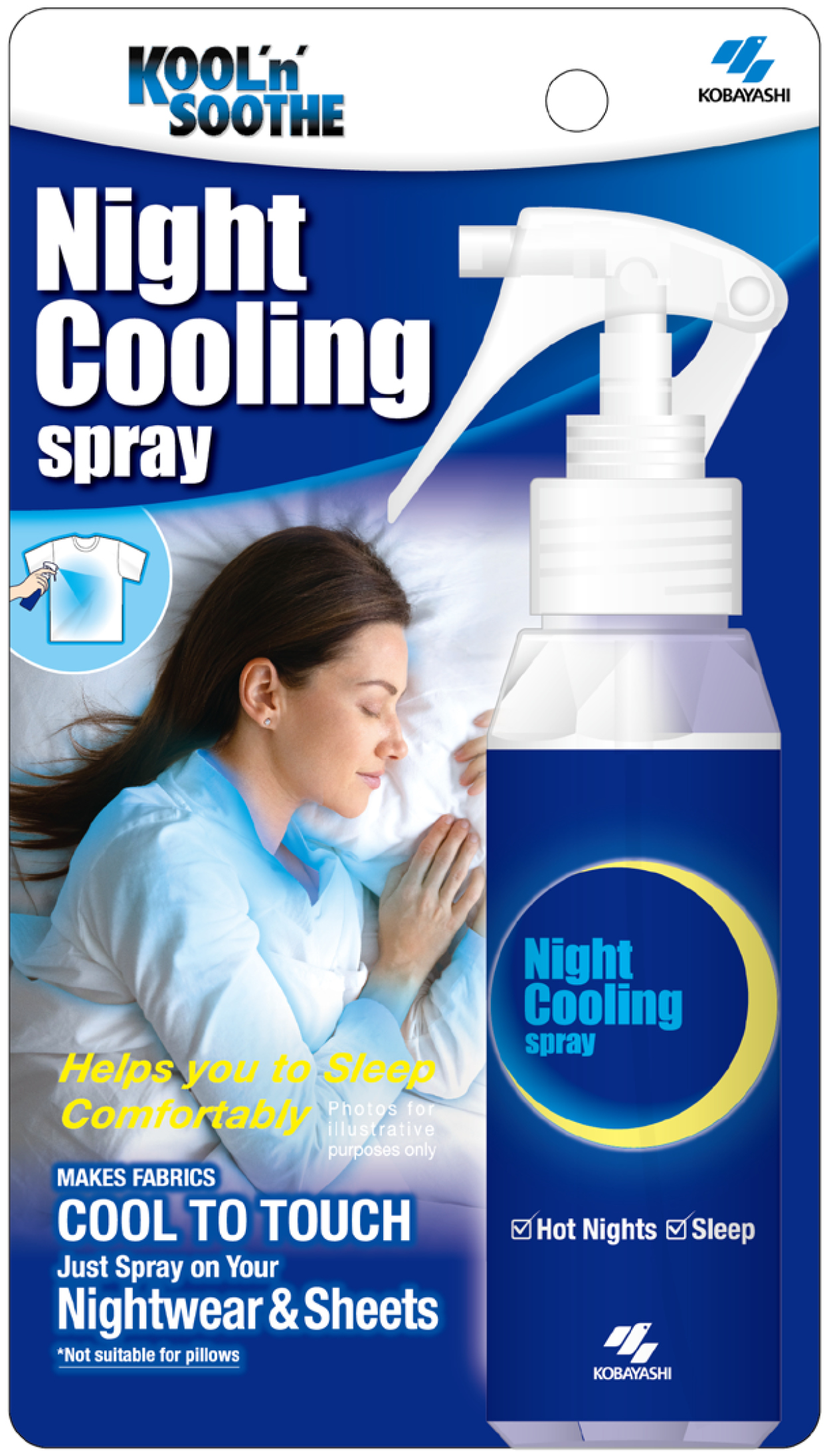 Kool 'n' Soothe Night Cooling Spray makes your nightwear and sheets cool to the touch helping you to sleep during hot nights.
